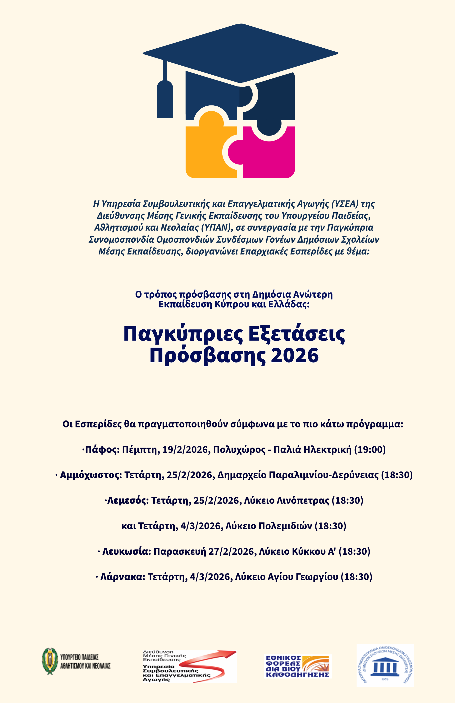 ΠΑΓΚΥΠΡΙΕΣ ΕΞΕΤΑΣΕΙΣ ΠΡΟΣΒΑΣΗΣ 2026 |