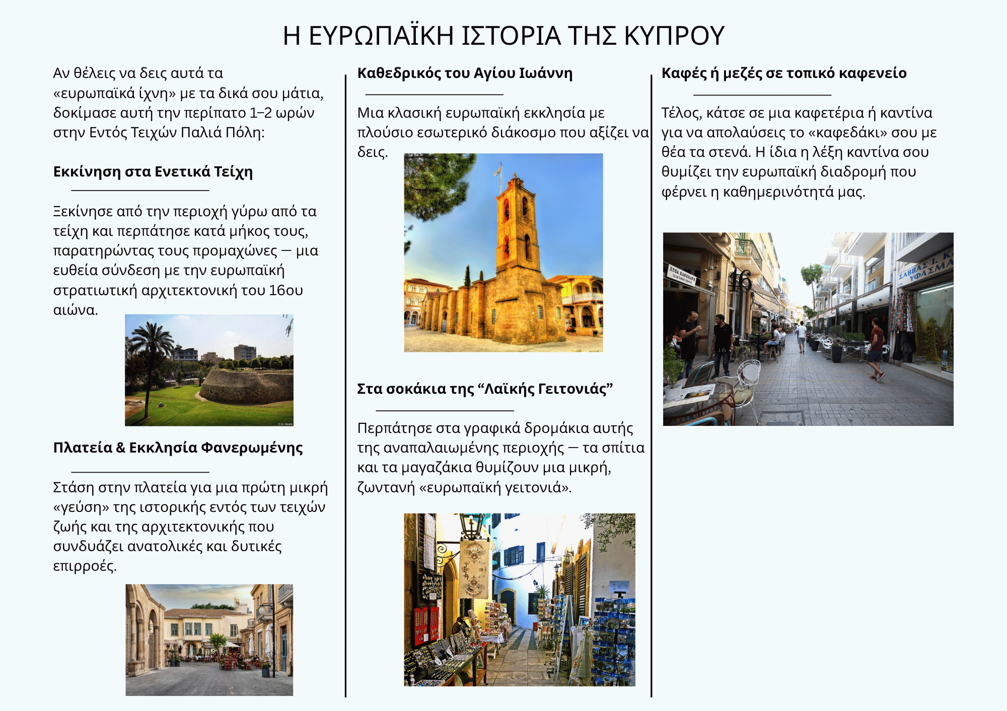 Αν θέλεις να δεις αυτά τα «ευρωπαϊκά ίχνη» με τα δικά σου μάτια, δοκίμασε αυτή την περίπατο 1–2 ωρών στην Εντός Τειχών Παλιά Πόλη: