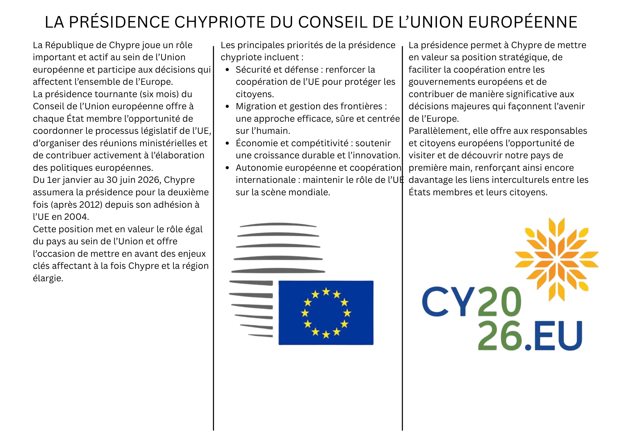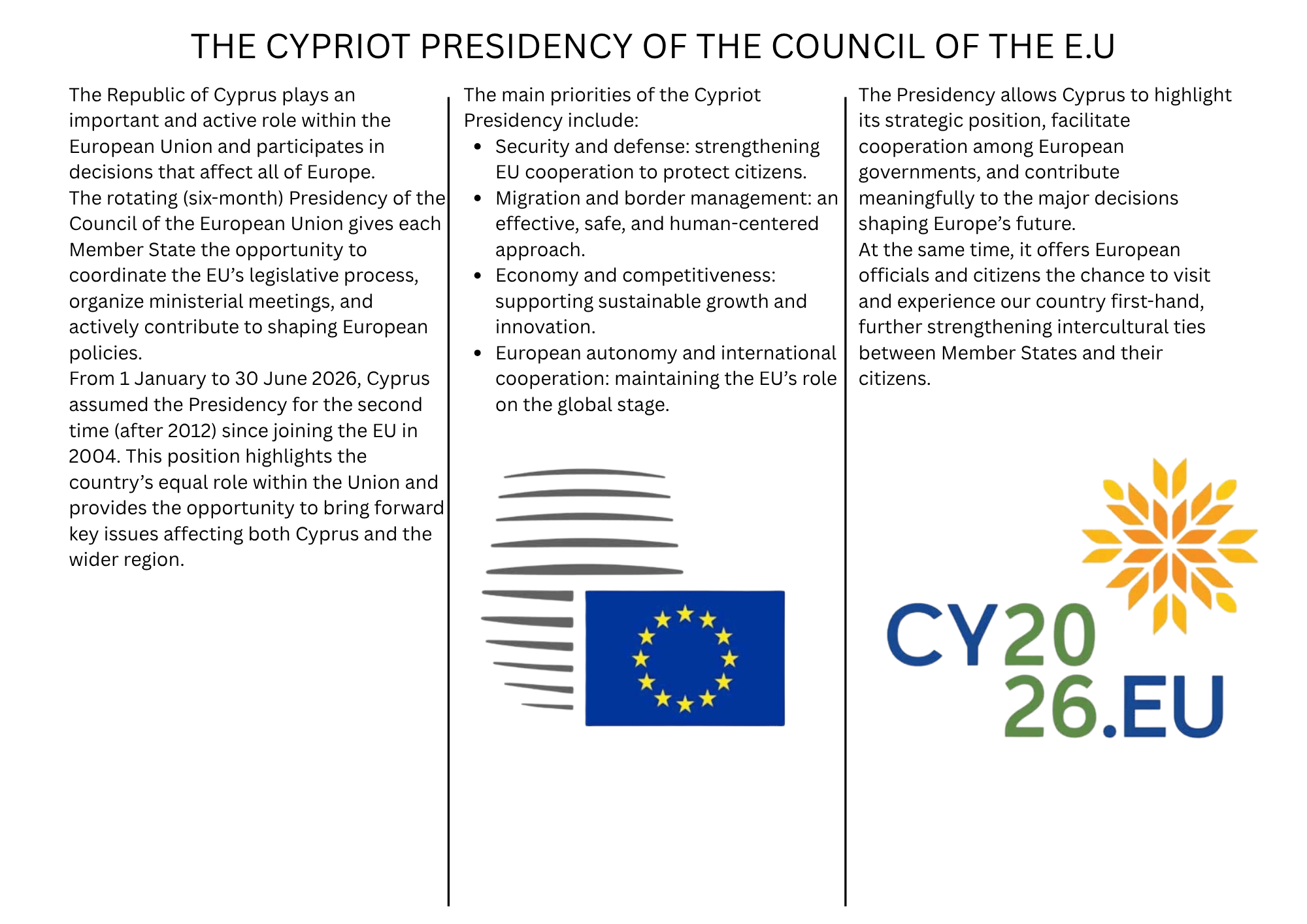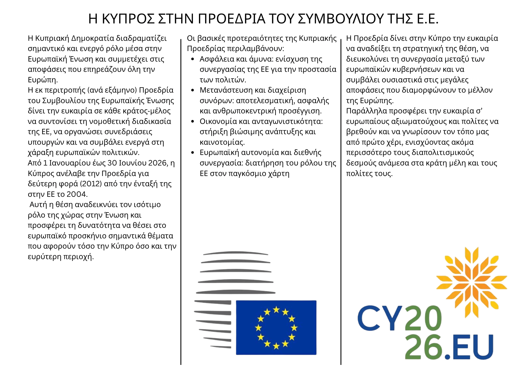 Η ΚΥΠΡΟΣ ΣΤΗΝ ΠΡΟΕΔΡΙΑ ΤΟΥ ΣΥΜΒΟΥΛΙΟΥ ΤΗΣ Ε.Ε.