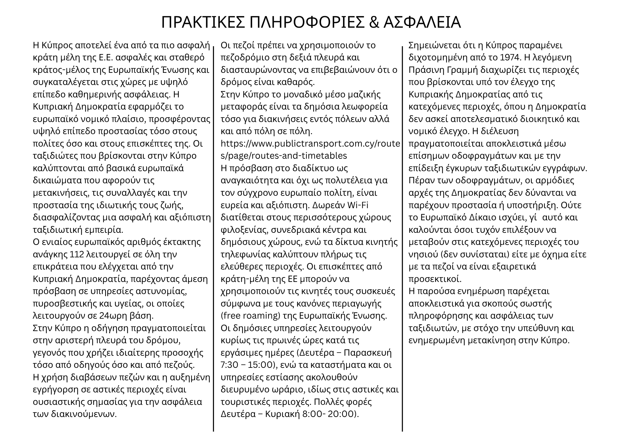 ΠΡΑΚΤΙΚΕΣ ΠΛΗΡΟΦΟΡΙΕΣ & ΑΣΦΑΛΕΙΑ