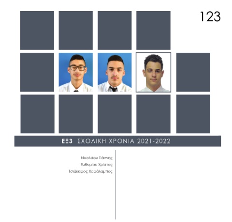 123 ΕΞ3 ΣΧΟΛΙΚΗ ΧΡΟΝΙΑ 2021-2022 Νικολάου Γιάννης Ευθυμίου Χρίστος Τσιάκκιρος Χαράλαμπος