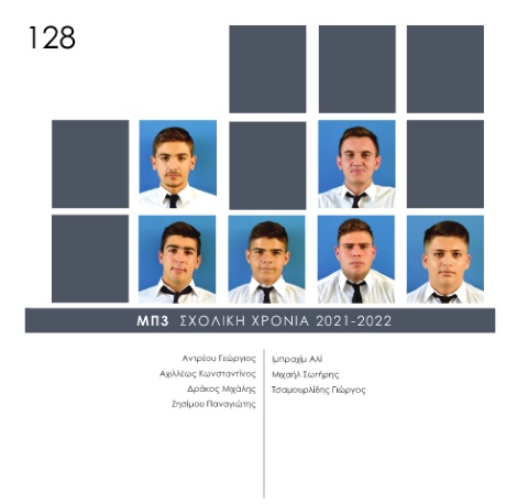 128 ΜΠ3 ΣΧΟΛΙΚΗ ΧΡΟΝΙΑ 2021-2022 Αντρέου Γεώργιος Ιμπραχίμ Αλί Αχιλλέως Κωνσταντίνος Μιχαήλ Σωτήρης Δράκος Μιχάλης Τσαμουρλίδης Γιώργος Ζησίμου Παναγιώτης