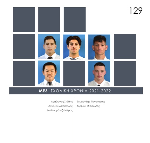 129 ΜΕ3 ΣΧΟΛΙΚΗ ΧΡΟΝΙΑ 2021-2022 Αγάθωνος Στάθης Συμεωνίδης Παναγιώτης Ανδρέου Απόστολος Τυρίμου Μισσιελλής Μαϊσουράντζε Ντέμης