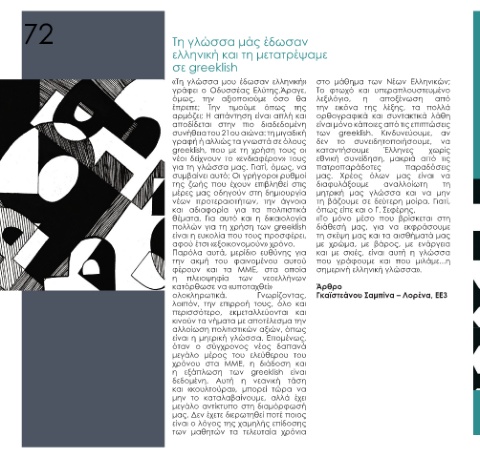 φέρουν και τα ΜΜΕ, στα οποία σημερινή ελληνική γλώσσα».