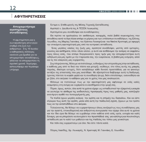 εκπαίδευση για το καλό των μαθητών και της παιδείας του τόπου μας γενικότερα.