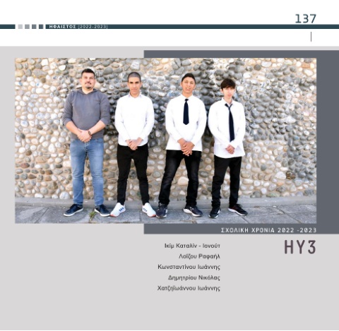 137 HΦΑΙΣΤΟΣ [2022-2023] ΣΧΟΛΙΚΗ ΧΡΟΝΙΑ 2022 -2023 ΗY3 Ικίμ Καταλίν - Ιονούτ Λοΐζου Ραφαήλ Κωνσταντίνου Ιωάννης Δημητρίου Νικόλας Χατζηϊωάννου Ιωάννης