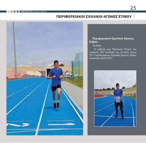 25 HΦΑΙΣΤΟΣ [2022-2023] ΠΕΡΙΦΕΡΕΙΑΚΟΙ ΣΧΟΛΙΚΟΙ ΑΓΩΝΕΣ ΣΤΙΒΟΥ Περιφερειακοί Σχολικοί Αγώνες Στίβου 3η Θέση Ο μαθητής μας Πλάτωνος Πέτρος του τμήματος ΞΕ2 κατέλαβε την 3η θέση στους 70 Περιφερειακούς Σχολικούς Αγώνες Στίβου ους Λευκωσίας 2022-2023.