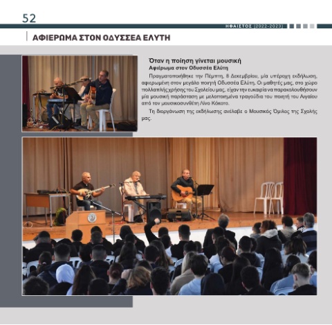 αφιερωμένη στον μεγάλο ποιητή Οδυσσέα Ελύτη. Οι μαθητές μας, στο χώρο