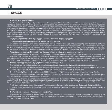 Το Πρόγραμμα Δράσεις Σχολικής και Κοινωνικής Ένταξης (ΔΡΑ.Σ.Ε.) υλοποιήθηκε για έβδομη συνεχόμενη σχολική χρονιά στη