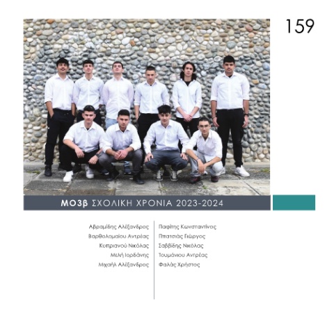 159 ΜΟ3β ΣΧΟΛΙΚΗ ΧΡΟΝΙΑ 2023-2024 Παφίτης Κωνσταντίνος Ππατσιάς Γιώργος Σαββίδης Νικόλας Τουμάνιου Αντρέας Φαλάς Χρήστος Αβραμίδης Αλέξανδρος Βαρθολομαίου Αντρέας Κυπριανού Νικόλας Μελή Ιορδάνης Μιχαήλ Αλέξανδρος