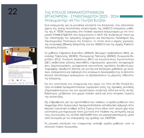 της Κυπριακής Εθνικής Επιτροπής για την UNESCO και της Αρχής Ραδιοτη-