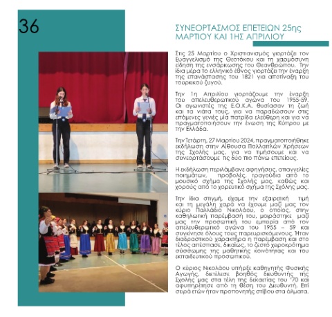Χριστιανισμός και Θεοτόκου είδηση της ενσάρκωσης του Θεανθρώπου. Την ίδια μέρα το ελληνικό έθνος γιορτάζει την έναρξη για του 1821 γιορτάζουμε αγώνα Ε.Ο.Κ.Α. να επόμενες γενιές μία πατρίδα ελεύθερη και για να ένωση την Την Τετάρτη, 27 Μαρτίου 2024, πραγματοποιήθηκε εκδήλωση στην Αίθουσα Πολλαπλών Χρήσεων να Η εκδήλωση περιλάμβανε αφηγήσεις, απαγγελίες τραγούδια Σχολής χορούς από το χορευτικό σχήμα της Σχόλης μας. την έχου