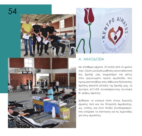 Α΄ ΑΙΜΟΔΟΣΙΑ μας Σχολής της οργανωμένη στην 81 φιάλες αίματος! εύσημα τα Δόθηκαν και όσο αίματος και επίσης, ως, για τους αιμοδότες.