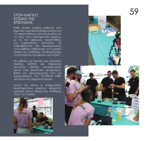 μαθητών δημοτικά, γυμνάσια και λύκεια καλούνται να παρουσιάσουν καινοτόμες ιδέες και επιστημονικές προσπάθειες προτάσεις πρωταγωνιστές Με τους μαθητές ταξιδεύουμε στον μαγικό κόσμο της επιστήμης και θαυμάζουμε Οι μαθητές της Σχολής μας Νικολάου και κατασκεύασαν εκτοξευτήρα, προγράμματος C++ στο SCYENCE FAIR, διαδραστικές οι χαρίζουν εμπειρίες στους λάτρεις της επιστήμης