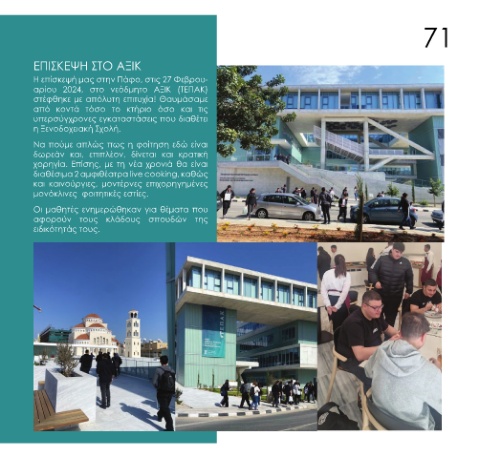 ΕΠΙΣΚΕΨΗ ΣΤΟ ΑΞΙΚ Η επίσκεψή μας στην Πάφο, στις 27 Φεβρου- νεόδμητο στο αρίου 2024, στέφθηκε με απόλυτη επιτυχία! Θαυμάσαμε το τόσο κοντά από υπερσύγχρονες εγκαταστάσεις που διαθέτει η Ξενοδοχειακή Σχολή. Να πούμε απλώς πως η φοίτηση εδώ είναι επιπλέον, και, δωρεάν χορηγία. Επίσης, με τη νέα χρονιά θα είναι διαθέσιμα 2 αμφιθέατρα live cooking, καθώς μοντέρνες καινούργιες, και μονόκλινες φοιτητικές εστίες. Οι μαθητές ενημερώθηκα