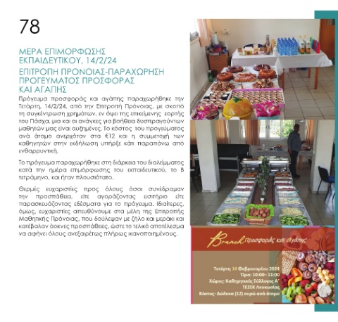 ΜΕΡΑ ΕΠΙΜΟΡΦΩΣΗΣ ΕΚΠΑΙΔΕΥΤΙΚΟΥ, 14/2/24 ΠΡΟΓΕΥΜΑΤΟΣ ΠΡΟΣΦΟΡΑΣ προσφοράς από ανερχόταν εκδήλωση στην ημέρα τετράμηνο, και ήταν πλουσιότατο. ευχαριστίες είτε προσπάθεια, εδέσματα ευχαριστίες