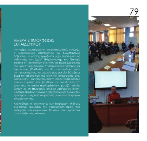 επιστήμονας Την Ημέρα επιμόρφωσης του Εκπαιδευτικού, 14/12/23, Δόβρολης, ο οποίος εργαζόταν μέχρι πρόσφατα ως Σχολή Institute of Technology στις ΗΠΑ και τώρα Διευθυντής του Ερευνητικού Κέντρου Υπολογιστικής Επιστήμης και του πιν προσκλήσεως, το σχολείο μας για μία διάλεξη με θέμα την αξιοποίηση της τεχνητής νοημοσύνης στην εκπαίδευση. Η τεχνητή νοημοσύνη μπορεί να προσφέρει βοηθούν που περιλαμβάνο