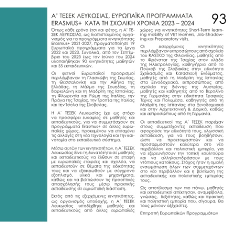 Α’ ΤΕΣΕΚ ΛΕΥΚΩΣΙΑΣ, ΕΥΡΩΠΑΪΚΑ ΠΡΟΓΡΑΜΜΑΤΑ