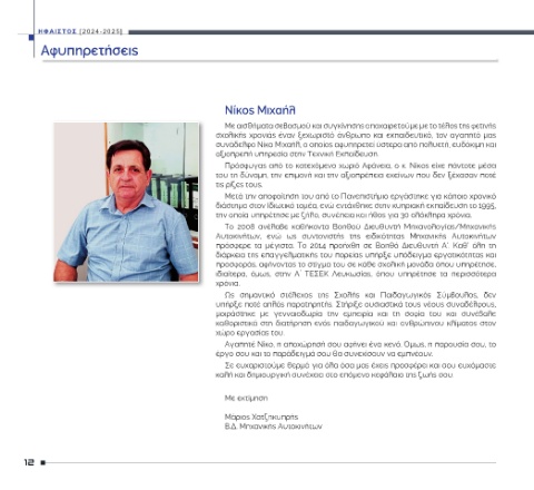συνάδελφο Νίκο Μιχαήλ, ο οποίος αφυπηρετεί ύστερα από πολυετή, ευδόκιμη και