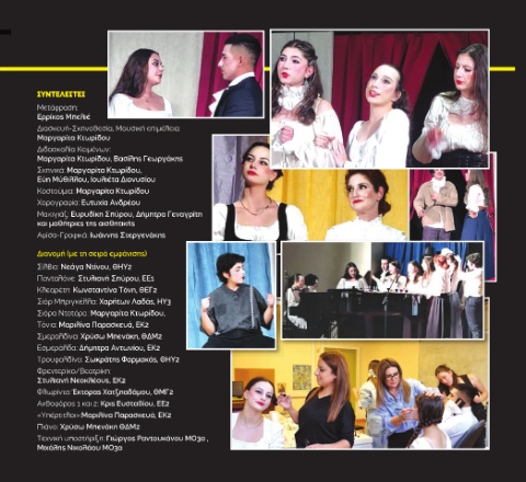 ΣΥΝΤΕΛΕΣΤΕΣ Μετάφραση: Ερρίκος Μπελιέ Διασκευή-Σκηνοθεσία, Μουσική επιμέλεια: Μαργαρίτα Κτωρίδου Διδασκαλία Κειμένων: Μαργαρίτα Κτωρίδου, Βασίλης Γεωργάκης Σκηνικά: Μαργαρίτα Κτωρίδου, Εύη Μύθιλλου, Ιουλιέτα Διονυσίου Κοστούμια: Μαργαρίτα Κτωρίδου Χορογραφία: Ευτυχία Ανδρέου Μακιγιάζ: Ευρυδίκη Σπύρου, Δήμητρα Γεναγρίτη και μαθήτριες της αισθητικής Αφίσα-Γραφικά: Ιωάννης Στεργενάκης Διανομή (με τη σειρά εμφάνισης) Σίλβιο: Νεάγα Ντίνου, ΘΗΥ2 Πανταλόνε: Στυ