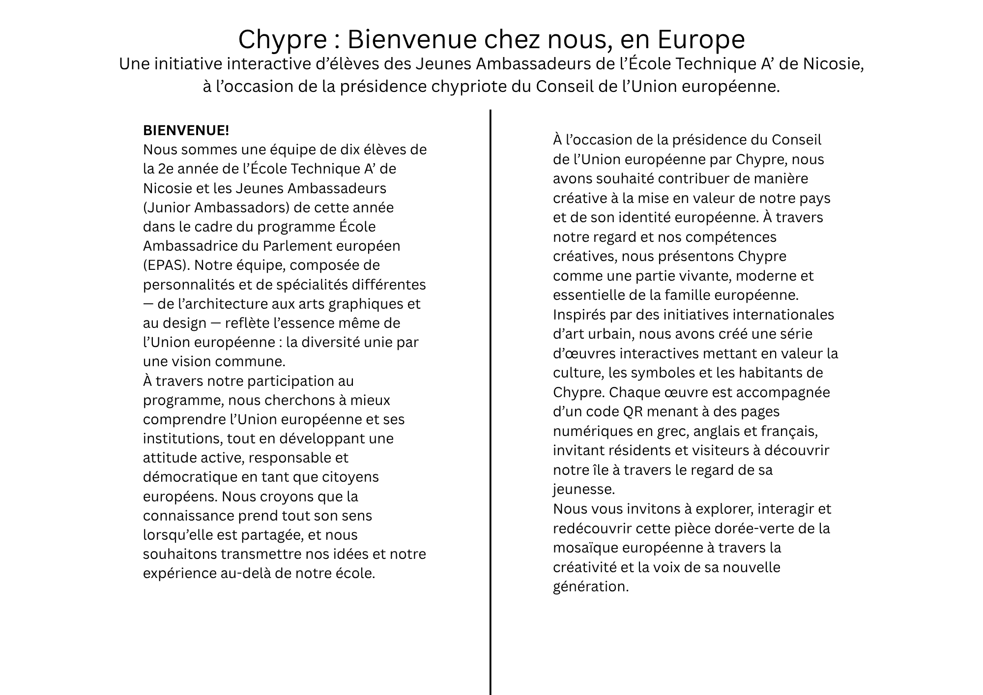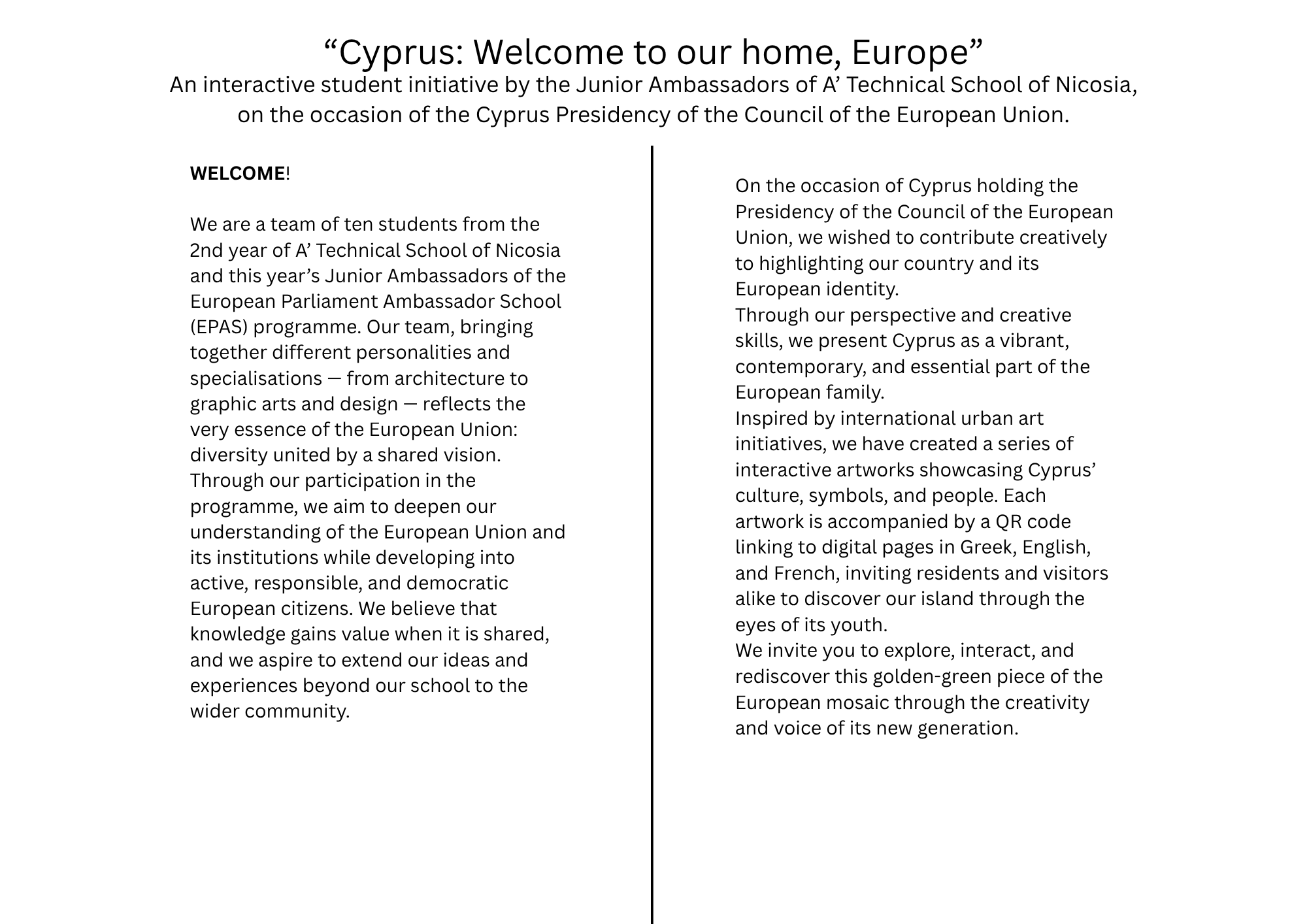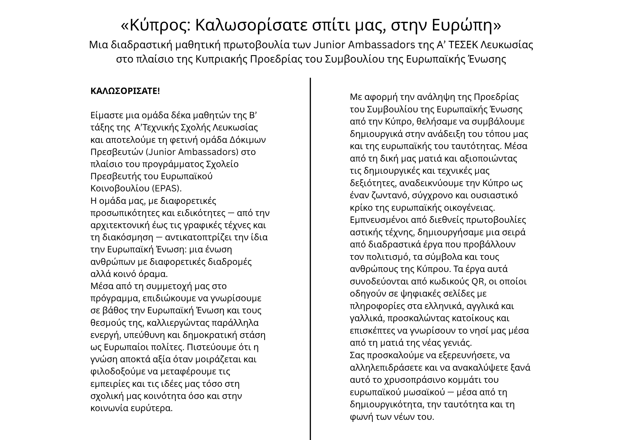 Μια διαδραστική μαθητική πρωτοβουλία των Junior Ambassadors της Α΄ ΤΕΣΕΚ Λευκωσίας στο πλαίσιο της Κυπριακής Προεδρίας του Συμβουλίου της Ευρωπαϊκής Ένωσης